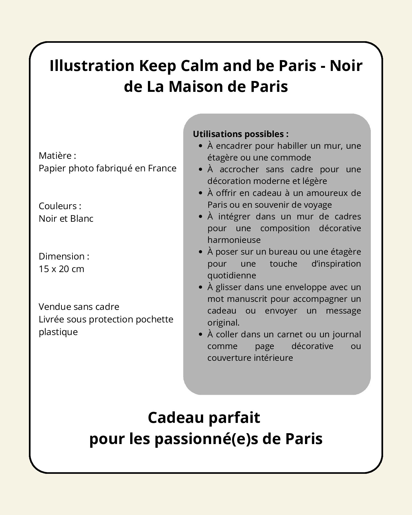Accueil » La boutique » Illustration Keep Calm and be Paris – Noir